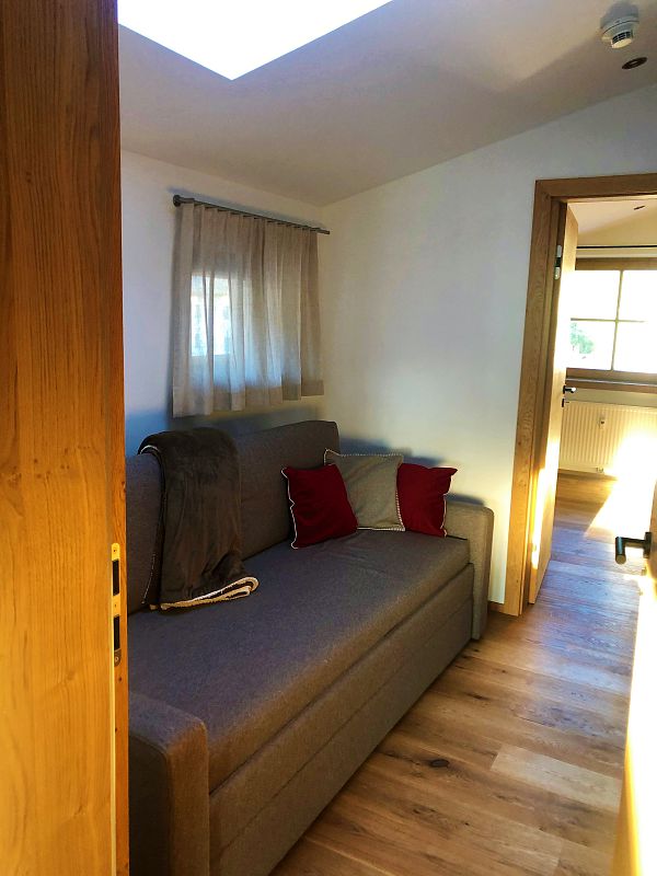 Diese Wohnung befindet sich im 2. Stock und ist auf Anfrage buchbar, diese ist der Stolz der Chefin des Hauses, und wurde im Dezember 2021 renoviert. Den Tag beginnen Sie mit dem Ausstieg aus dem gemütlichen Boxspringbett und Blick auf das Kitzbühler Horn. Die charmante Wohnung ist weiters ausgestattet mit einem im Nov. 2022 renoviertem, neuem Badezimmer mit Echtglasduschnische mit Regenbrause und Sitzecke , Waschtisch und WC. Ein kleiner Raum mit Dachfenster zwischen Wohnzimmer und Schlafzimmer bietet Platz für 2 Personen vorzugsweise Kinder, auf dem komfortablem Couchbett, welches sich zum Stockbett aufklappen lässt. Eine 5. Person übernachtet komfortabel auf der 140 cm breiten Ausziehcouch im Wohnzimmer.